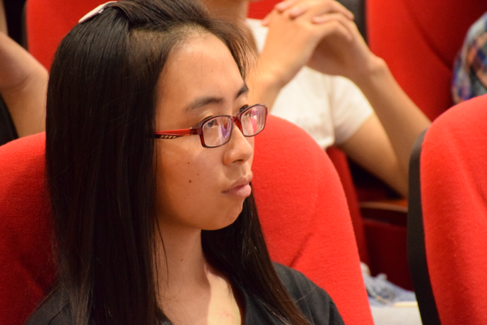 (同学们正在认真聆听师兄的教导。)