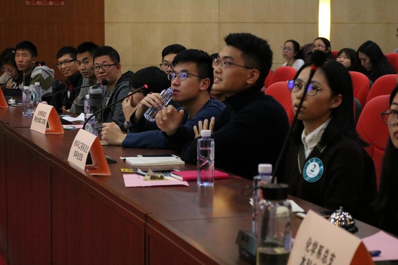 主持人宣读党章知识竞赛的比赛规则,正式开始了比赛。参赛队伍有5支:化学系本科生党支部、材料科学与工程系本科生党支部、化学系研究生第二党支部、材料科学与工程系研究生党支部、化学系研究生第一党支部。