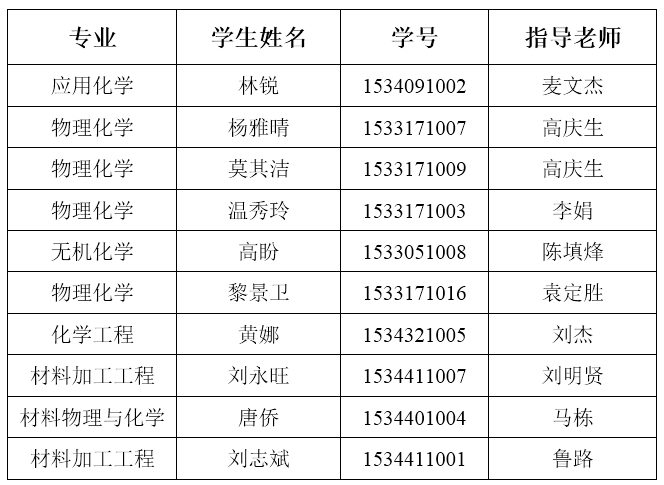 按照德赢vwin体育官网登录优秀学位论文的相关评选细则,遵循“科学公正,注重创新,严格筛选,宁缺勿滥”的原则,化学学科组、材料科学与工程学科组分别对申报的校级优秀学位论文进行了评选,推荐名单如下: