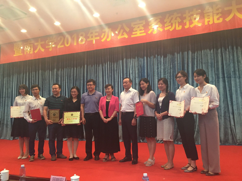 2018年7月17日下午,德赢vwin体育官网登录2018年办公室系统技能大赛决赛在曾宪梓科学馆国际会议厅举行。来自全校各单位的40名工作人员参加决赛,经过激烈角逐,由德赢官网及药学院、生命科学技术学院、图书馆、中医学院、教育学院联合组成的第四组获得团队一等奖,学院办公室程瑶与其他四名组员获个人一等奖。饶敏副校长及学校党政办公室孙彧主任、工会侯宏伟常务副主席为德赢官网获奖选手颁奖。