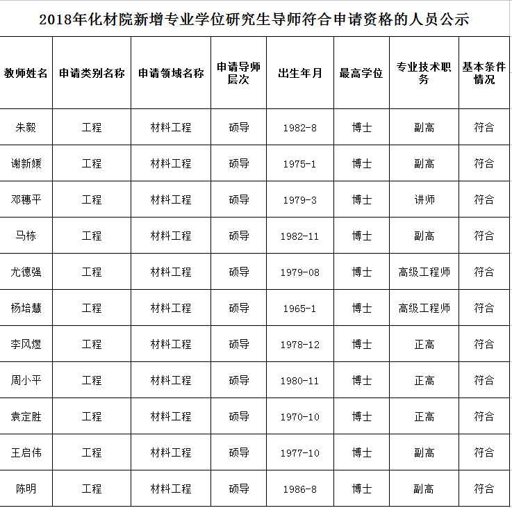 根据《德赢vwin体育官网登录关于开展2018年新增研究生指导教师遴选工作的通知》及《《德赢vwin体育官网登录研究生指导教师遴选与认定办法》(暨学位〔2017〕33号)》,我院作为化学、材料科学与工程、材料工程一级学科或专业类别所属学院,已于上学期末已完成对各申请人相关材料的收齐、汇总和基本审核。