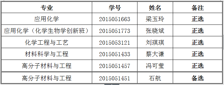 根据《德赢vwin体育官网登录关于印发<德赢vwin体育官网登录优秀应届本科毕业生(内招生)面试攻读研究生推荐工作实施办法(试行)>的通知》(暨教﹝2014﹞50号)以及《德赢vwin体育官网登录推荐免初试攻读硕士学位研究生工作细则》,学院拟推荐2015级应用化学专业梁玉玲等5名同学免初试攻读硕士学位研究生,详细名单见附件。