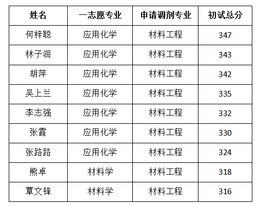 经学生意愿申请、学院审核,按照申请人员初试总分由高到低排序,现公布德赢vwin体育官网登录获得2019年材料工程专业硕士研究生院内调剂复试资格的考生名单: