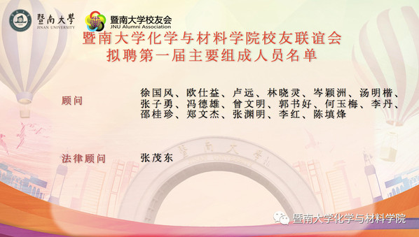 德赢vwin体育官网登录李丹院长欢迎各位领导,老师和校友们的到来,他向大家介绍了化学学科的悠久历史,以及材料学科近年来的发展和前景,并表示,作为传承历史、续创辉煌的暨南化材人,我们将站在全新的起点,秉承“忠信笃敬、知行合一、自强不息、和而不同”的暨南精神,积极推进高水平大学建设工作,为将化材院建设成国内一流、国际知名的教学研究型学院奋发努力。
