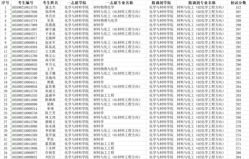 经学生意愿申请、学院审核,现按申请人员初试总分顺序公布获得调剂复试资格的考生名单: