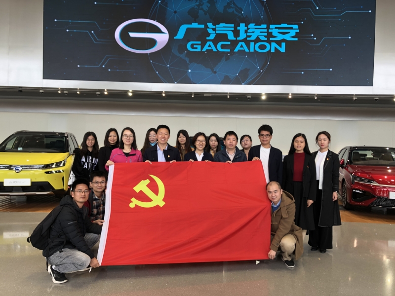 为进一步丰富党建工作内容和形式,以党建促管理服务,2020年12月3日,德赢vwin体育官网登录党委书记邵桂珍、副书记陈文举、副院长周小平及机关党支部党员共16人,与结对共建的广州市番禺区新造镇政府机关党支部、德赢vwin体育官网登录番禺校区机关党支部、网络空间安全学院网安智科学生联合党支部一道,前往位于番禺区化龙镇的广汽埃安新能源汽车有限公司(以下简称广汽埃安公司),通过实地参观考察、座谈交流的形式开展主题党日活动。