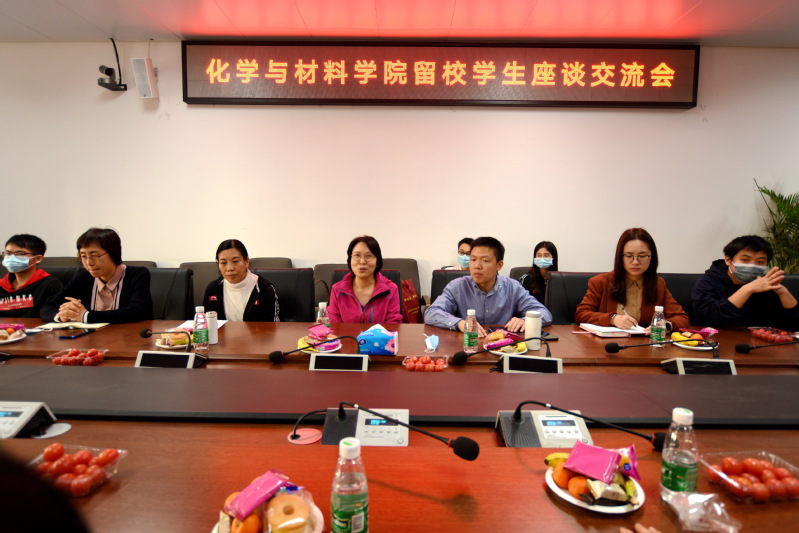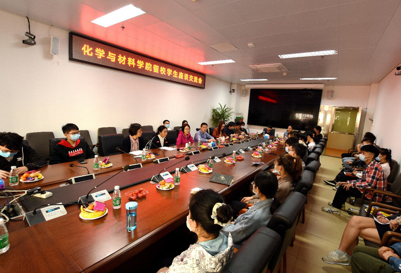 随后,学院召开了留校学生代表座谈交流会,听取10位本科生、20位研究生代表讲述他们的学习生活情况和假期安排,解答他们的疑问和困难,送上学院的慰问和关怀。