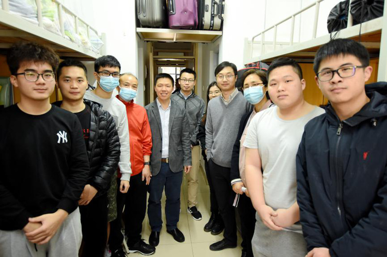 随后,陈文举、容建华、查海燕、本科生辅导员、部分班主任、各班学生班委分头走访了本科生宿舍。老师们嘱咐大家做好宿舍卫生和疫情防控,尽快调整状态投入到新学期的学习和科研中,尽早做好学业生涯规划,瞄准目标努力;与高年级学生交流了毕业、升学、就业等情况,为准备升学深造的同学提出相关建议。在外招同学宿舍,老师们着重关心大家的学业问题,鼓励同学们在学习上更加努力,多去图书馆,或与身边优秀的内招同学结伴互相学习,考出理想成绩。
