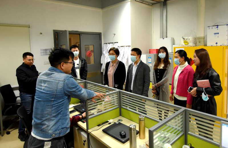 陈文举一行首先走访了位于番禺校区化材楼三至五楼的实验室。很多返校的研究生、本科生已经在这里积极认真开展科研实验或学习。老师们详细询问了研究生同学们的假期生活、科研情况、职业规划及遇到的困难等,提醒同学们要严格遵守实验规章,注意实验安全,希望同学们做好新学期的科研工作计划,在新的一年开启新征程、攀登更高峰。