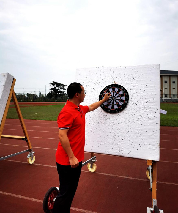 此外,为增添活动的节庆氛围,调动运动热情,正式开跑前,番禺校区工会安排了教职工趣味飞镖预热项目,德赢官网陈兴宽、欧刚、赵剑豪三位老师代表学院参赛,成绩记入本次活动总分。