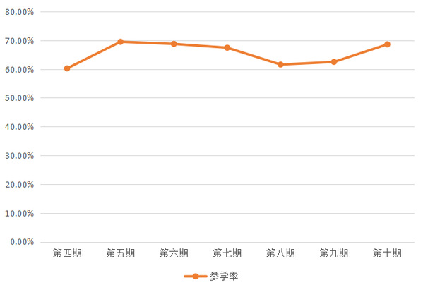 学院整体参学率保持在60%以上