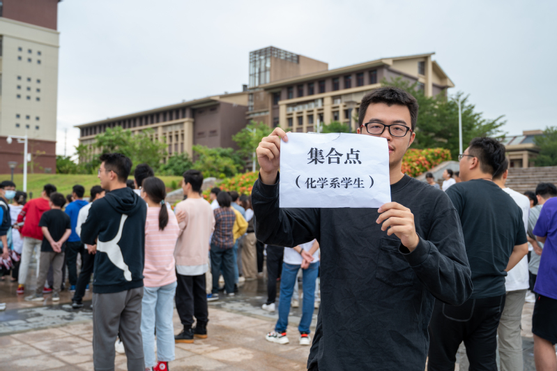 化学品泄漏应急演练结束后,F1栋学院楼警铃响起,各楼层负责人到达指定地点疏散各房间人员,带领师生沿着指定逃生楼梯通道快速撤离,并有序撤离到学院楼门前安全地带。同时,各负责人清点人数,确保所有人员安全撤离。