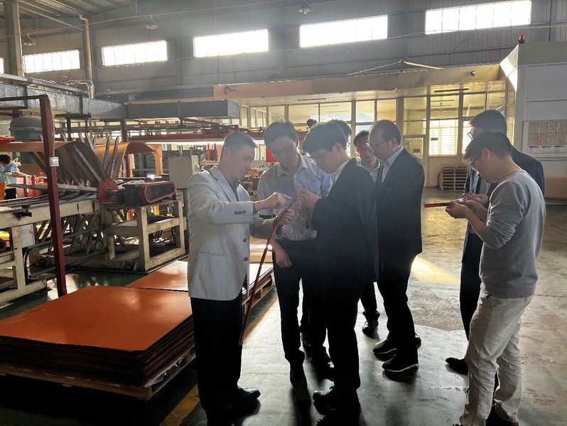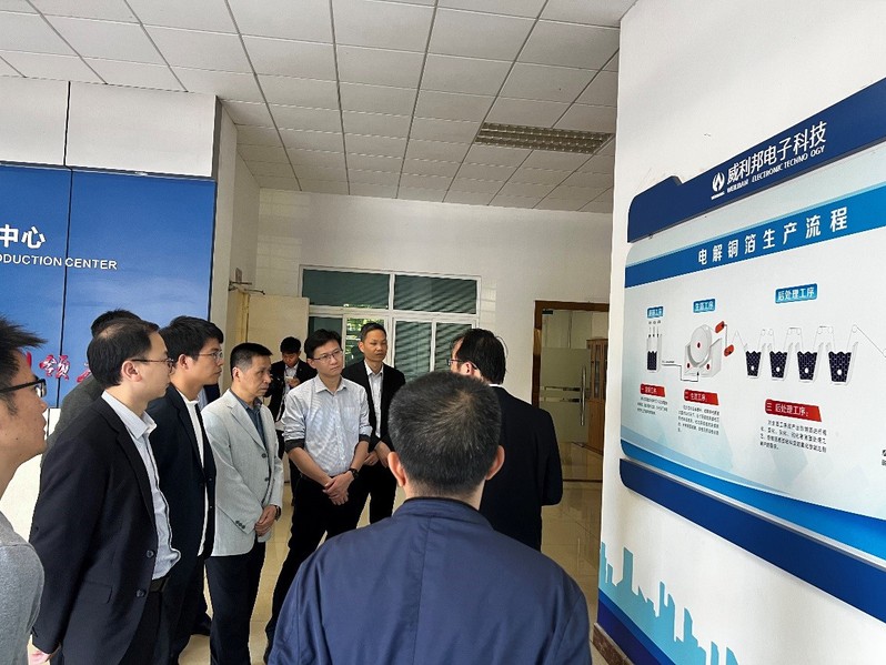 11月29日下午,盈华科技总经理李远泰与企业骨干等带领德赢官网教师一行参观考察了梅州市威利邦电子科技有限公司铜箔生产中心与盈华电子筹建项目,详细介绍了电解铜箔生产流程,并反映了现有铜箔生产工艺上碰到的技术难点。
