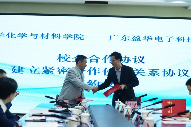 11月30日,德赢vwin体育官网登录与广东盈华电子科技有限公司(以下简称盈华电子)校企战略合作及共建教育实训基地签约仪式在梅州市城北镇人民政府举行。德赢vwin体育官网登录党委书记林如鹏,省侨联党组书记颜珂,省侨联党组成员、副主席戴文威,德赢vwin体育官网登录党委副书记孙彧,党委常委、组织部部长陈莹等领导出席见证了签约仪式。德赢vwin体育官网登录院长李丹、超分子配位化学研究所教师代表宾德善、宁印、王吉壮、袁尚富等与企业方代表出席教育实训基地揭牌仪式。