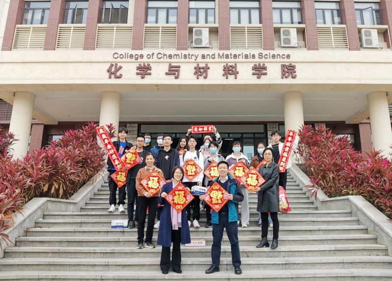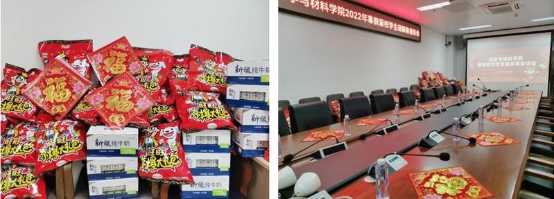 虎年春节将至,为给留校同学营造欢乐喜庆的春节氛围、做好寒假期间校园疫情防控和留校学生服务工作,1月26日、27日,学院党委书记邵桂珍、党委副书记陈文举、材料科学与工程系党总支书记容建华,化学系党总支书记查海燕和学生辅导员一行,在番禺校区及本部超分子配位化学研究所与留校本科生、研究生举行迎新春座谈,前往番禺校区实验室及南村走访慰问留居的研究生、本科学生,了解他们的假期学习生活情况和计划,给予同学们周到的建议和温馨的提醒,并为他们送上新春大礼包、春联、“福”字,致以新春问候和祝福。