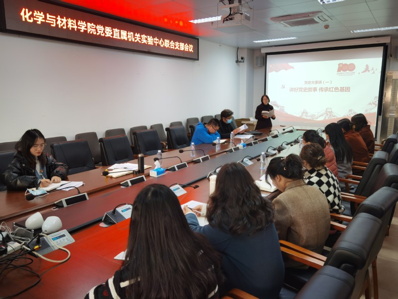 为深入学习贯彻习近平新时代中国特色社会主义思想和党的十九届六中全会精神,落实学校党委不断巩固拓展党史学习教育成果,推进党史学习教育常态化、长效化的要求,德赢vwin体育官网登录党委组织全院党支部开展“党史大家讲”主题党课活动。2月25日上午10:00,德赢vwin体育官网登录党委书记邵桂珍在番禺校区化材楼2022会议室开始第一讲,主题为“讲好党史故事传承红色基因”。学院机关与实验中心联合党支部12名党员、入党积极分子参与党课学习。