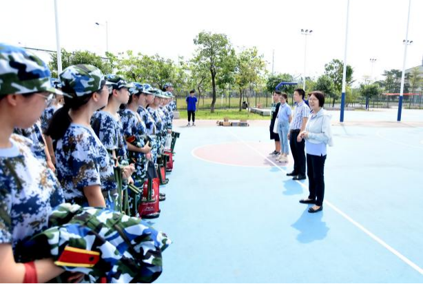 9月7日上午,学院党委书记邵桂珍带队来到新生军训场地,看望慰问147名本科新生,并为新生们送上了学院精心准备的功能饮料,希望同学们能够斗志昂扬、精神饱满地投入军训中。邵桂珍对军训教官和新生入学教育助教的辛劳付出给予赞扬,对新生的训练成果和精神风貌给予肯定。同时,希望通过军训,能够树牢同学们的国防安全意识,培养大家吃苦耐劳、团结协作的精神;鼓励大家坚持训练,增强体质,为今后的学习和科研工作打好坚实的身体基础。