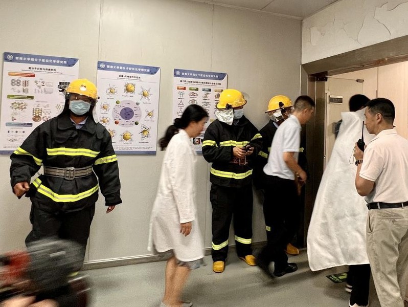 为进一步提升实验室安全管理水平,提高德赢官网师生应对突发事件,特别是实验室安全事故的应急处置能力,9月21日上午,德赢官网联合实验室与设备管理处、保卫处在超分子配位化学研究所开展了实验室安全事故应急演练活动。实验室与设备处副处长饶星、技术安全科科长黄小勇及保卫处刘俊岭科长、庞辉亮科长、吴旭老师等出席本次演练。德赢vwin体育官网登录院长兼超分子配位化学研究所安全负责人李丹、副院长兼实验室安全负责人周小平、实验中心常务副主任周艳晖、副主任廖小建以及超配所师生80余人参加了演练。