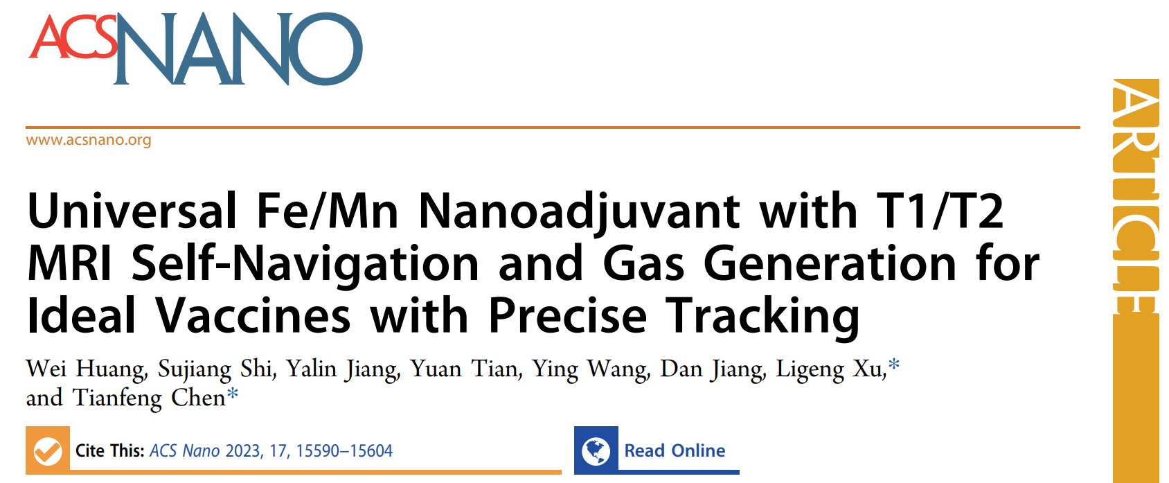 近日,德赢vwin体育官网登录陈填烽教授/许利耕教授团队在新型疫苗佐剂开发方面取得重要进展,相关成果以“Universal Fe/Mn Nanoadjuvant with T1/T2 MRI Self-Navigation and Gas Generation for Ideal Vaccines with Precise Tracking”为题,发表于国际权威期刊ACS NANO(影响因子17.1),德赢vwin体育官网登录为唯一通讯单位。这是该团队继开发纳米硒佐剂用于新冠病毒纳米疫苗(STTT, 2023)、灭活病毒纳米疫苗(Small Methods, 2023)等一系列研究工作后取得的又一重要成果。