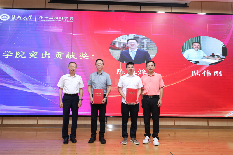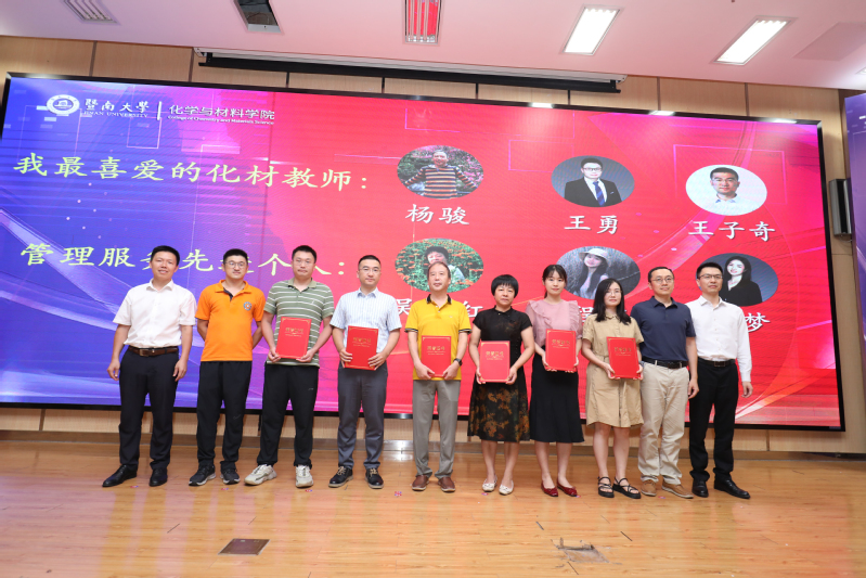 张沫、刘毓洁、黄耀佳、龙卓飞以及全体学院领导、校友代表依次为获奖教师与校友颁发荣誉证书,并合影留念。