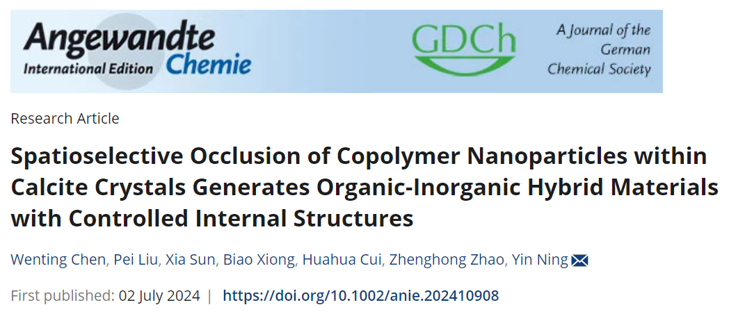 近日,德赢官网宁印教授课题组在国际著名期刊Angew. Chem. Int. Ed.上发表了以“Spatioselective Occlusion of Copolymer Nanoparticles within Calcite Crystals Generates Organic-Inorganic Hybrid Materials with Controlled Internal Structures” 为题的重要研究成果(图1)。