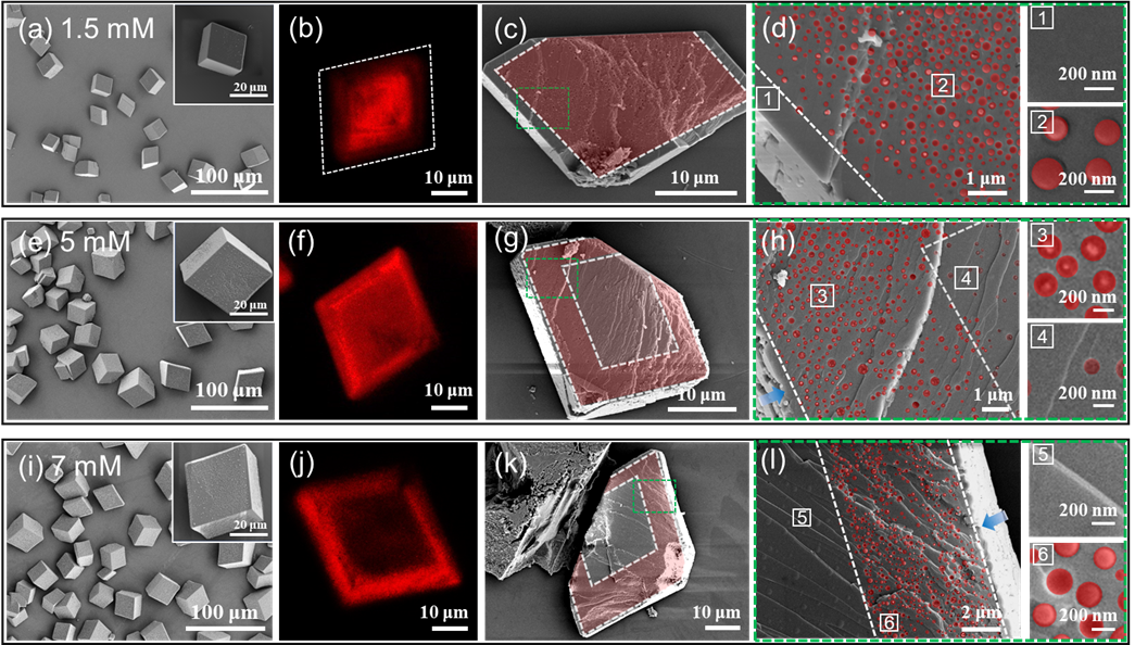 宁印教授长期从事该领域的探索,在前期工作的基础上(J. Am. Chem. Soc., 2023, 145, 21546; Angew. Chem. Int. Ed., 2023, 62, e202300031; Angew. Chem. Int. Ed., 2020, 59, 17966; J. Am. Chem. Soc., 2019, 141, 2481; J. Am. Chem. Soc., 2019, 141, 2557; Angew. Chem. Int. Ed., 2019, 58, 4302; Angew. Chem. Int. Ed., 2019, 58, 8692.),该工作利用纳米粒子内嵌策略,通过简单地调控钙离子浓度即可有效地“编辑”客体纳米粒子在主体晶体中的空间分布(图2-3),为构建具有可控内部组成和空间结构的新型复合材料提供了新策略,同时有望为生物矿化机理的研究提供新思路。