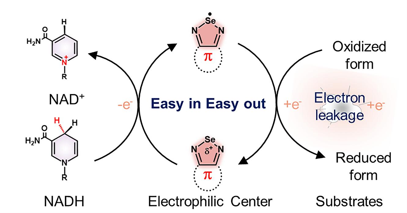 化疗是临床恶性肿瘤的主要治疗方法之一,但其有效性受到选择性差和副作用的限制。科学家们一直在努力寻找新的方法来设计化疗药物,以实现高效且低毒的癌症治疗。癌细胞无限增殖所导致的高水平氧化还原稳态特征为化疗药物的开发提供了机会。针对这一特征,科学家们专注于设计模仿芬顿反应催化特性的药物,以增加氧化应激或设计药物以抑制细胞内抗氧化系统。在该研究中,陈填烽/马丽团队探索了一种新策略:模拟线粒体中电子泄漏的过程,将抗氧化小分子(NADH和GSH)转化为活性氧(ROS)。为了实施这一策略,该团队首次使用强极化的硒和硫原子构建“易进易出”的亲电中心,使NADH和GSH中的活性电子通过自由基中间体快速穿梭,导致大量电子的突然释放,从而促进电子泄漏。特别是,电子穿梭效率随着亲电中心极化特性的增强而提高。这项工作为设计高效化疗药物提供了一种新方法和理论指导,激励化学家在相关结构设计中,给药物开发者带来新思路,并为临床肿瘤治疗带来新的希望。