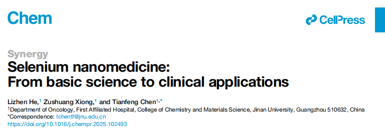 Selenium nanomedicine: From basic science to clinical applications Lizhen He, Zushuang Xiong, and Tianfeng Chen*, Chem, 2025, 11, 102493.